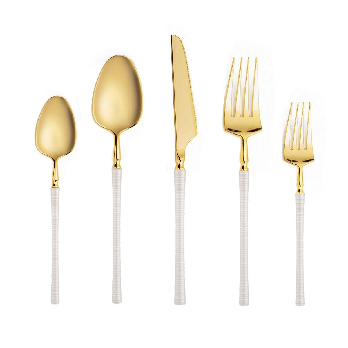 Dining Collection Luxe Ribbed Series Cutlery Combo Pack (White/Gold) - 40 Ct.