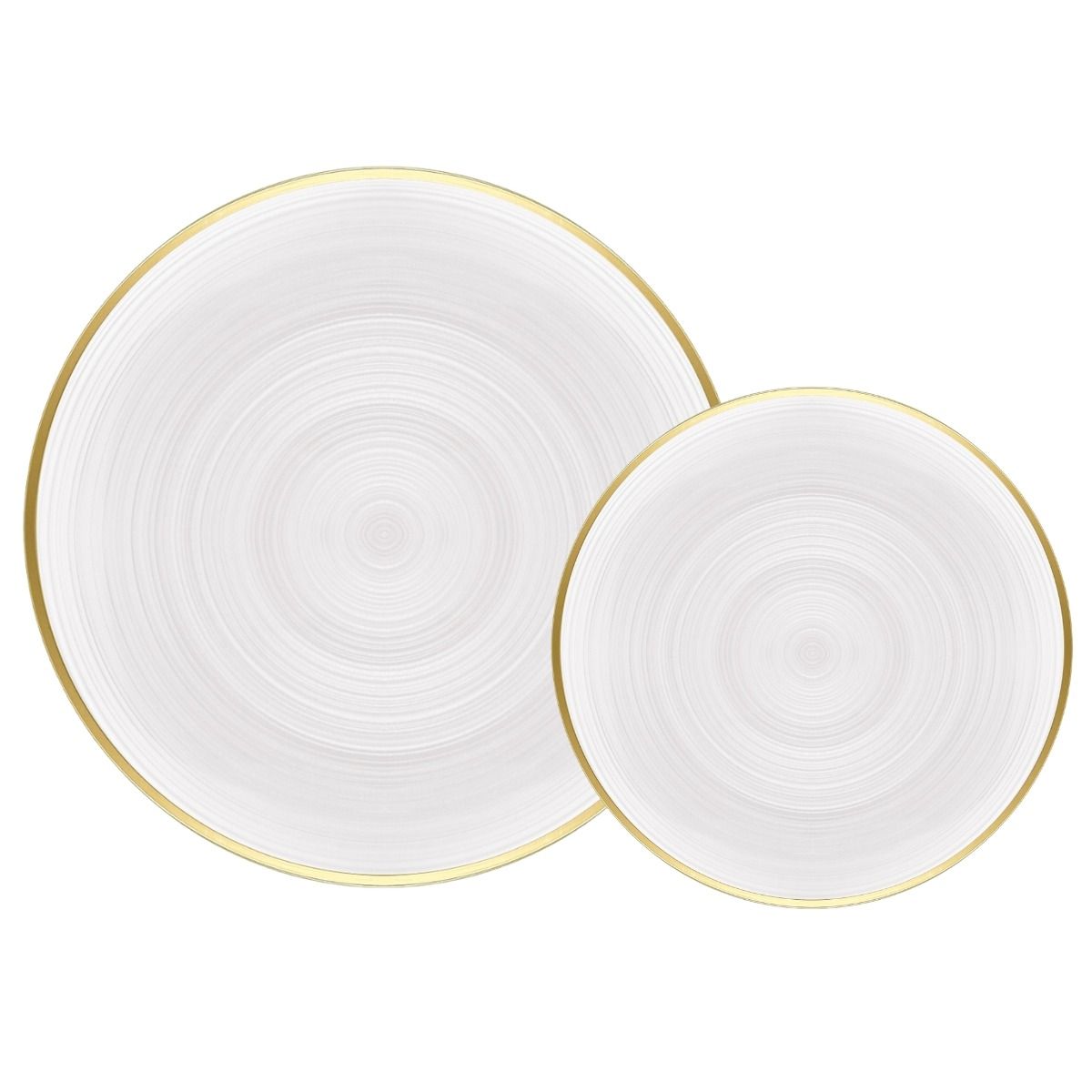 Coupeware Ribbed Round Combo Plates (Pearl & Gold) - 32 Ct.