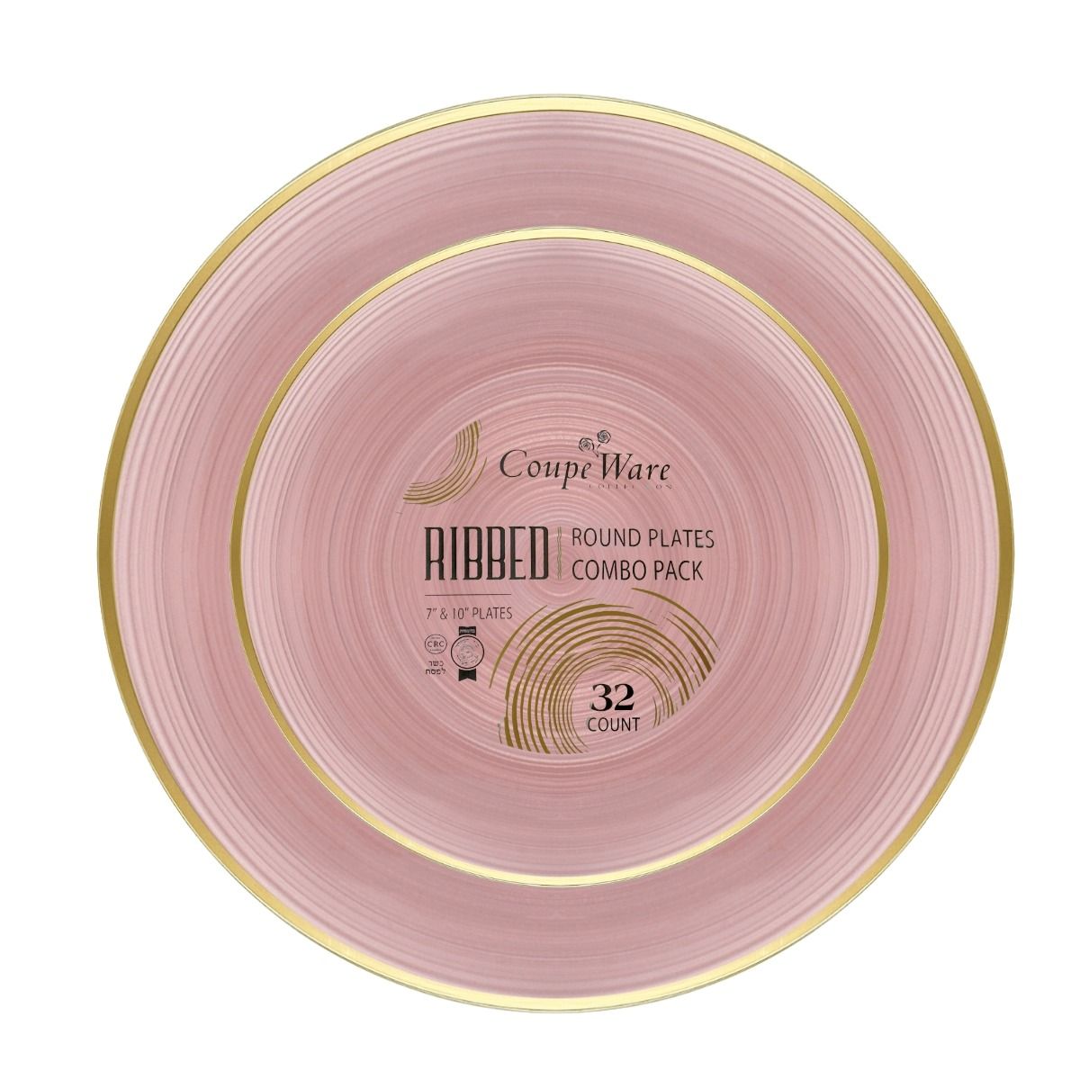 Coupeware Ribbed Round Combo Plates (Pink & Gold) - 32 Ct.